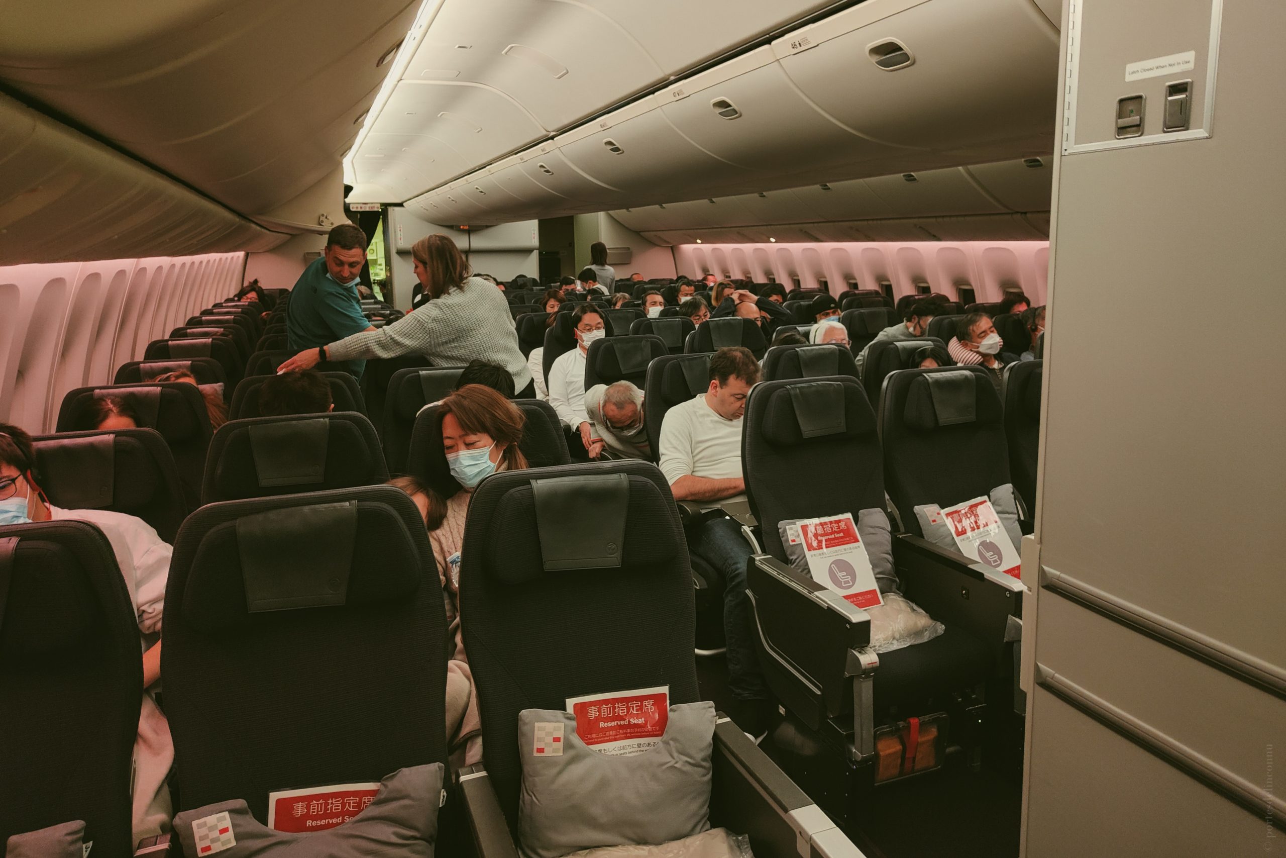 Et dès le début, aucun doute, j’ai pu voir que nous y étions bel et bien. Toutes les cinq mètres, jusqu’à la douane, des personnes distribuaient une feuille (qui me semblait honnêtement pas si importante) vis à vis d’indications de santé/Covid, à chacun d’entre nous. J’ai voulu dire qu’un pour deux nous suffisait, en pensant tel un Français. Erreur de débutant. Ils ne nous laissaient pas continuer tant que nous en avions pas tous les deux une en main… Plus loin dans l’allée, à côté des toilettes, j’ai décidé de ranger cette feuille dans la pochette, ne voyant plus personne en distribuer. Deuxième erreur. 20 mètres plus loin, quelqu’un vérifiait que nous en avions bien une. Et je ne vais pas vous surprendre en vous disant que ce n’était pas la dernière vérification…