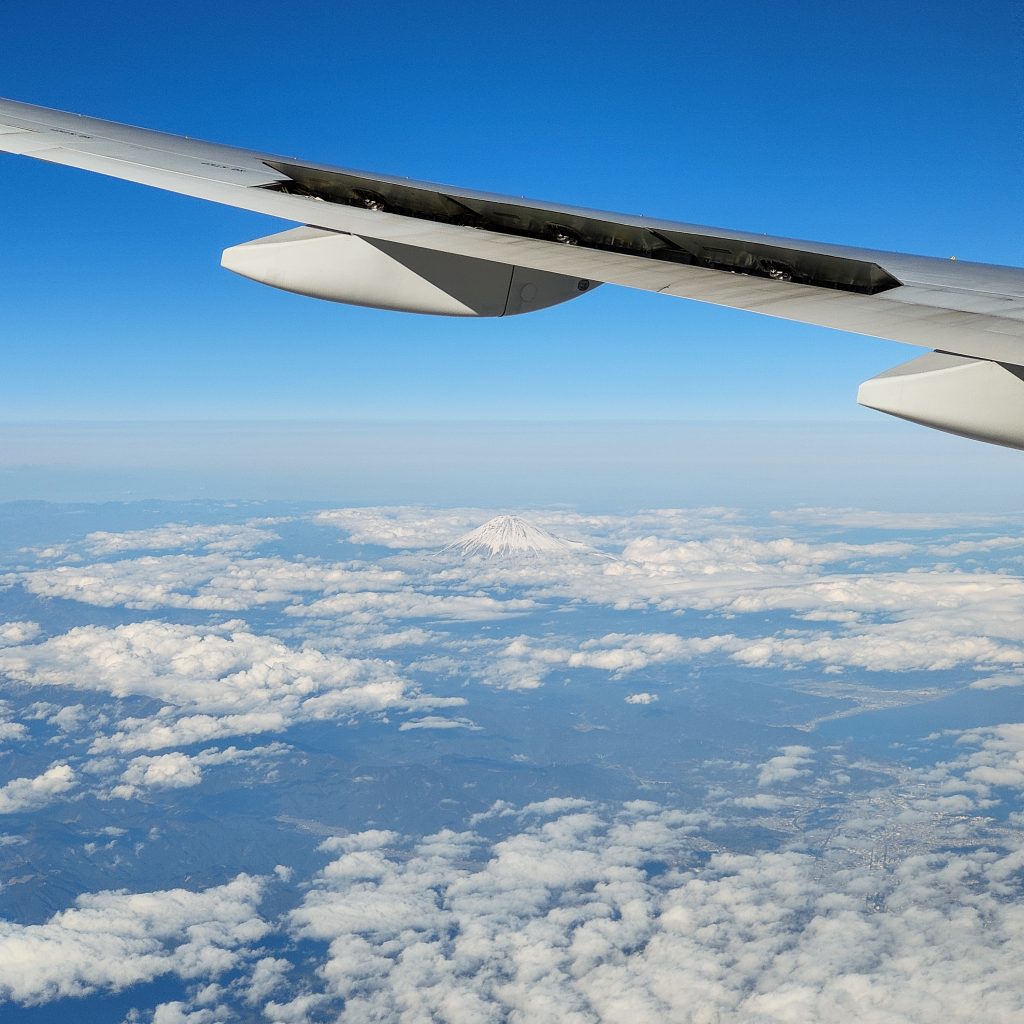 Après un aperçu de quelques grandes villes Coréennes, Japonaises, et une superbe vue sur Fuji San* qui nous salua, nous arrivâmes à l’aéroport Tokyo Haneda, à priori avec un peu d’avance. Nous étions très fatigués, mais l’adrénaline nous gardait debout ! Après un petit coup de stress vis à vis des documents justificatifs pour le Covid, nous voilà au Japon !