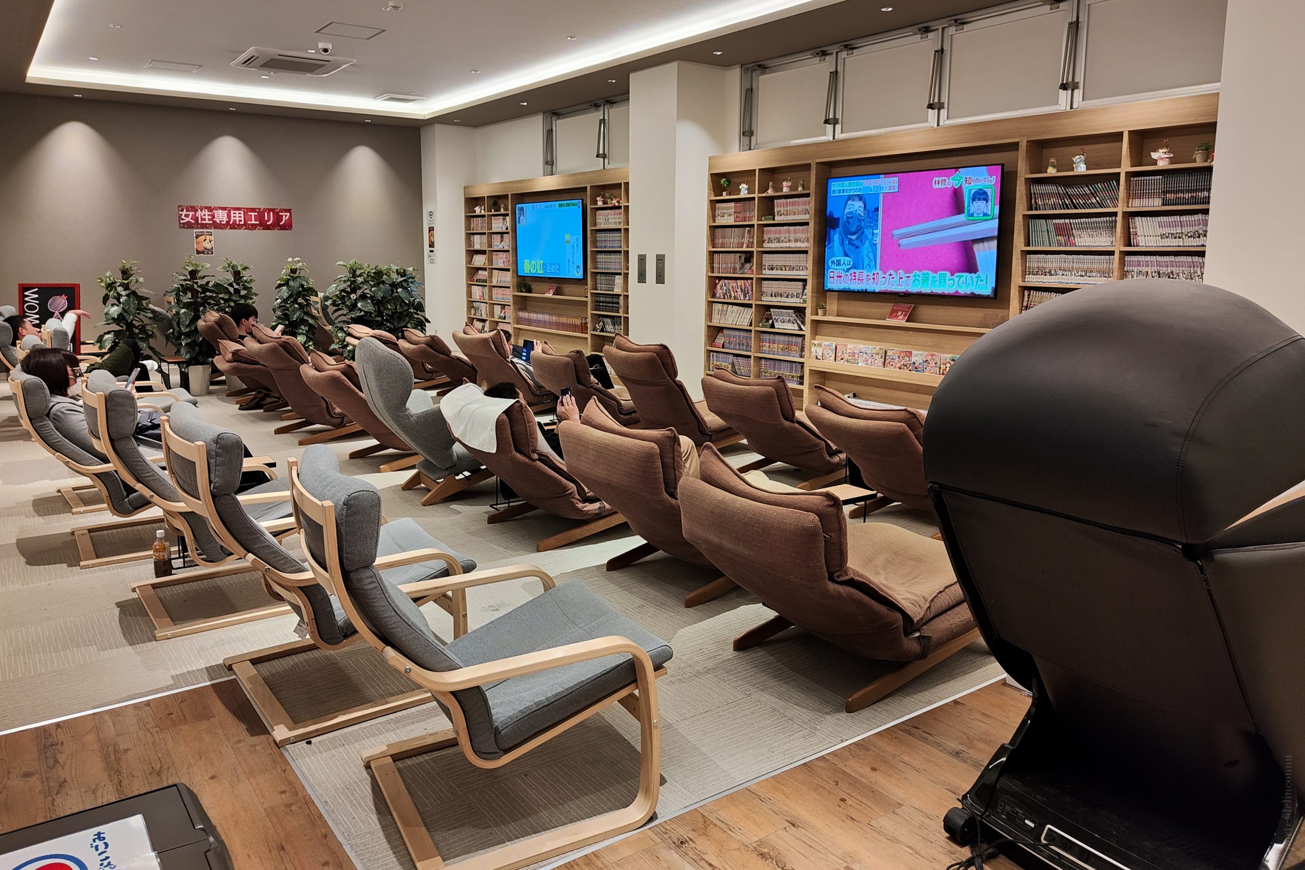 Malgré ne pas avoir dormi depuis près de 30 heures à ce moment là, je me suis senti revigoré. L’expérience était très agréable, et la nudité n’est honnêtement pas dérangeante, puisque tout le monde est logé à la même enseigne. En sortant du bain il y a des habits « loungewear » à disposition pour se détendre (encore plus !) dans la salle de repos que propose l’hôtel, où on peut regarder la télé, lire des mangas, utiliser une chaise de massage, boire ou manger, ou simplement faire un petit somme. Cependant, rien de tout ça pour nous, c’était l’heure du repas !